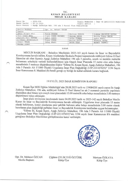 Aşağı Zaferiye Mahallesi 196 Ada 3 Parsel (Anafartalar İlkokulu) Plan DeğişikliğiSon Askı Tarihi: 08.11.2025